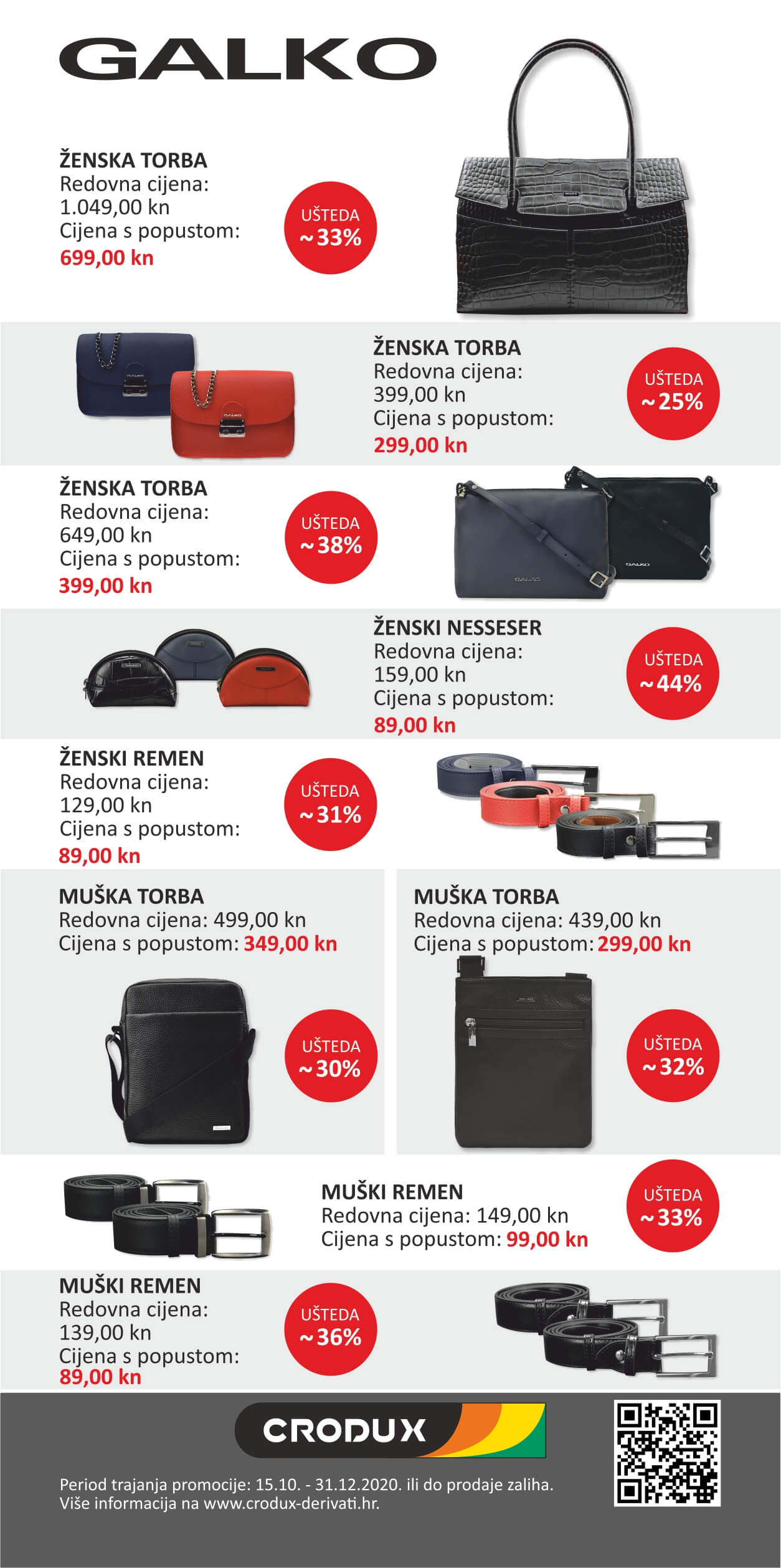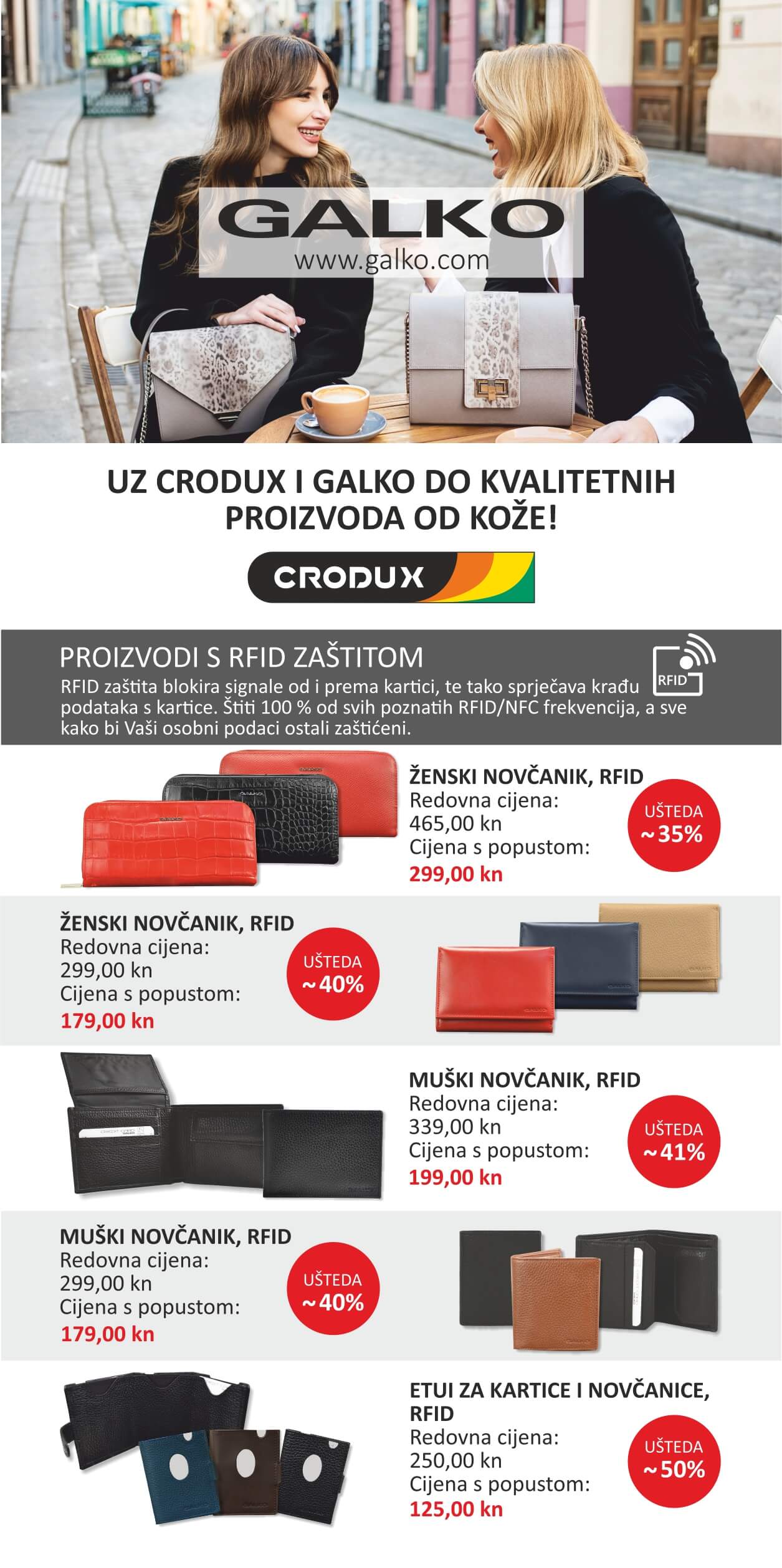 U razdoblju od 15.10.2020. do 31.12.2020 ostvarite popust do 50% na Galko proizvode na Crodux benzinskim servisima. Na benzinskim crpkama su dostupni i Galko proizvodi s RIFD zaštitom koja blokira signale od i prema kartici kako bi spriječili krađu vaših podataka s kartice, a nalazi se između vanjskog sloja novčanika i unutarnje obloge.
